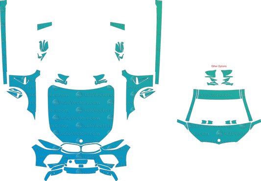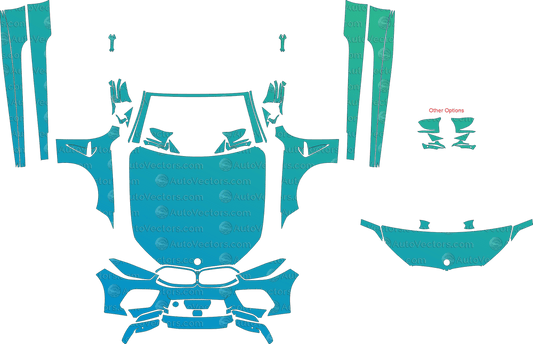 Download precise pre-cut vector patterns for the BMW M8 Coupe, Convertible, and Gran Coupe. Perfect for PPF installers and vinyl wrap specialists who need accurate, true-to-scale templates that deliver a professional fit and seamless alignment on every panel.